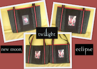 Twilight táskákat készítettem a lánykáimnak. Ugyanolyan mind a 2 csak más a szegélye. Van rajta fekete csipke is , csak nem nagyon látszik. Megpróbálok olyan képet csinálni, amin jobban látszik.